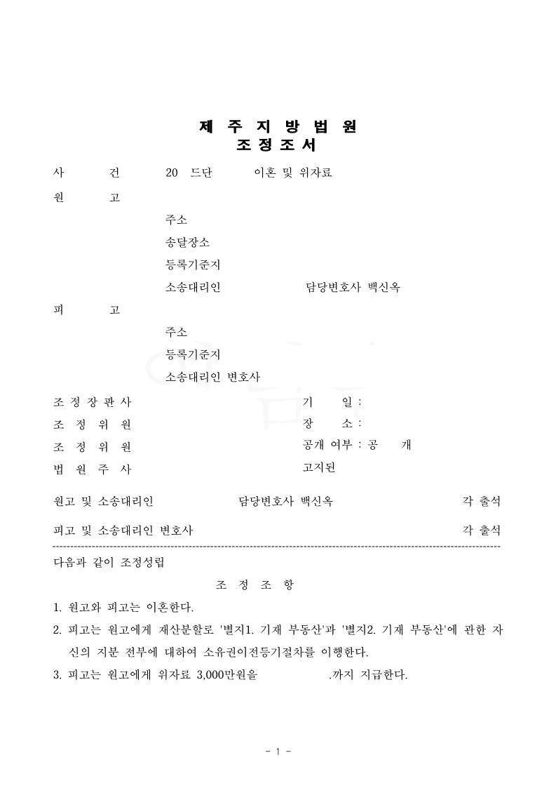 작성자 정보 법무법인현 작성 작성일 2023.11.24 16:43 컨텐츠 정보 2,652 조회 목록 본문 사례자료 - 이혼 담당변호사 백신옥 변호사 064-752-2014 064-752-2015 sobaek@hyunlaw.co.kr 이혼및위자료 사건 승소사례 가정폭력을 하던 남편을 상대로 이혼청구, 위자료청구, 재산분할청구를 하여 이혼, 위자료, 재산분할을 하는 내용의 조정이 이루어지고 종료된 사례입니다. 관련자료 이전 양육비변경신청 사건 승소사례 작성일 2023.11.24 16:58 다음 공사대금 사건 승소사례 작성일 2023.11.24 16:27 댓글 0 등록된 댓글이 없습니다. 로그인한 회원만 댓글 등록이 가능합니다. 목록